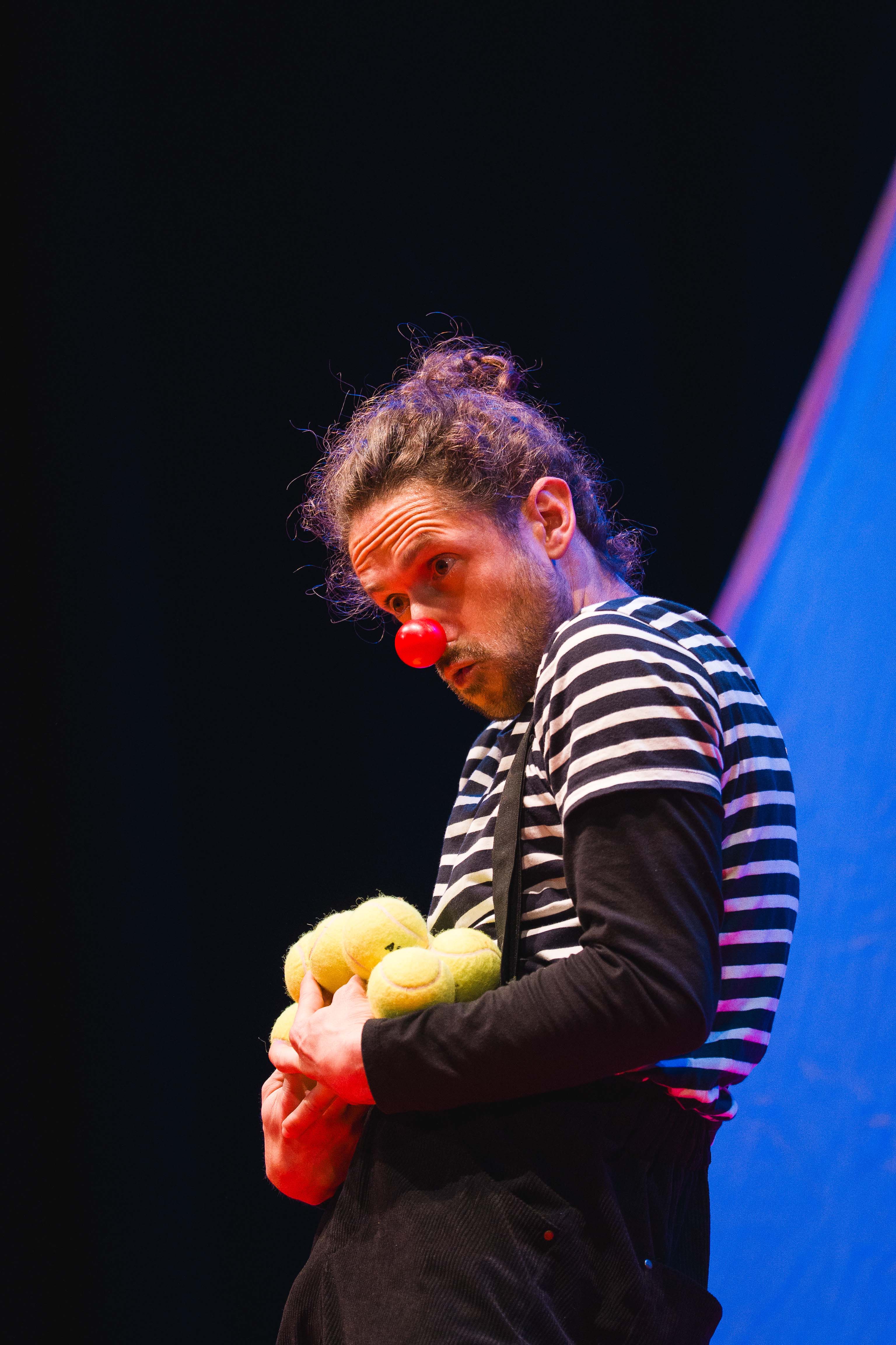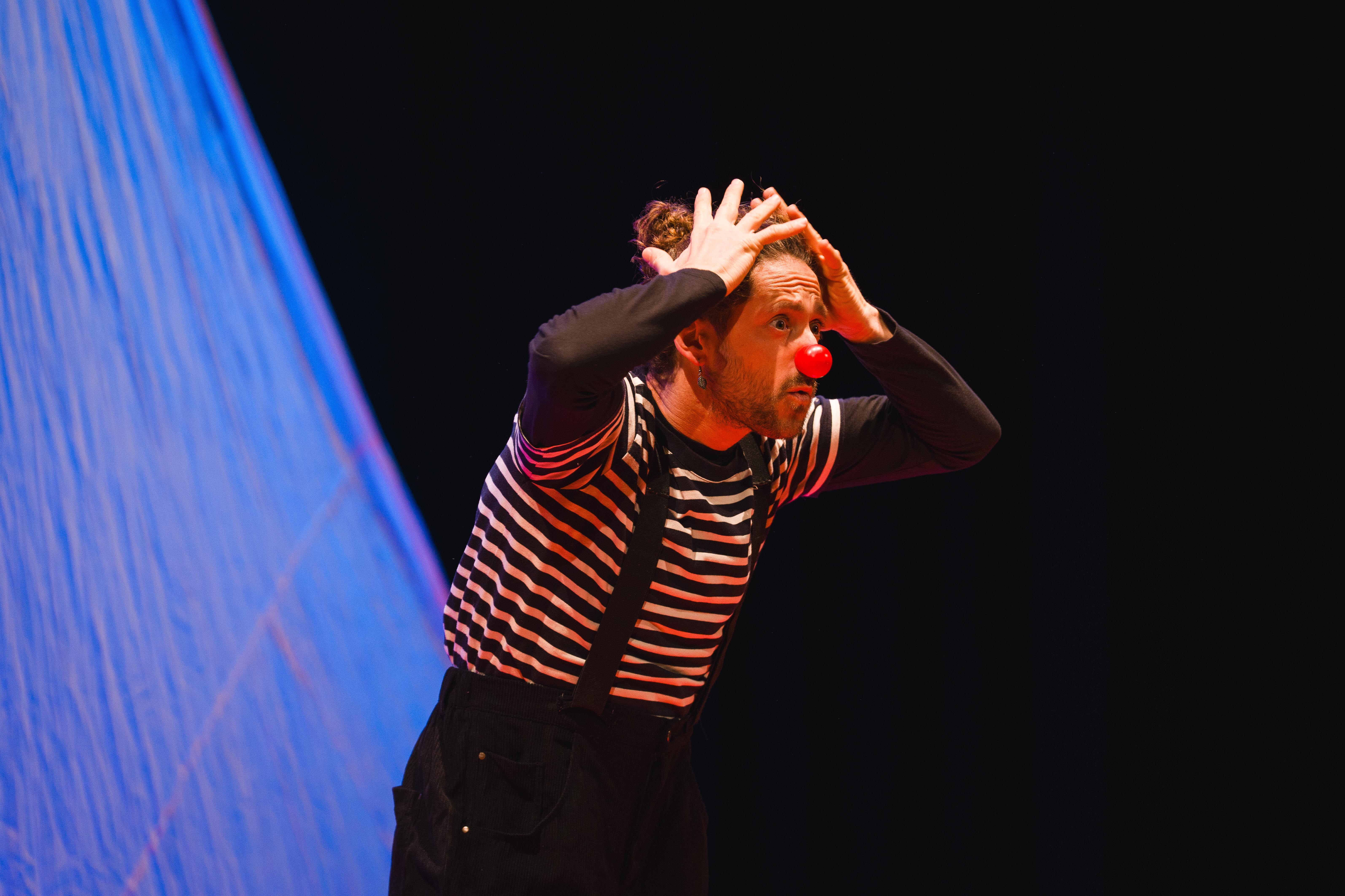 Trama e temi dello spettacolo: Un uomo qualunque, intrappolato in una vita grigia fatta di abitudini e certezze, sente nascere dentro di sé un desiderio diverso: lasciare tutto e seguire la propria passione. Indossare il naso rosso, diventare clown, scegliere la leggerezza come atto di coraggio.