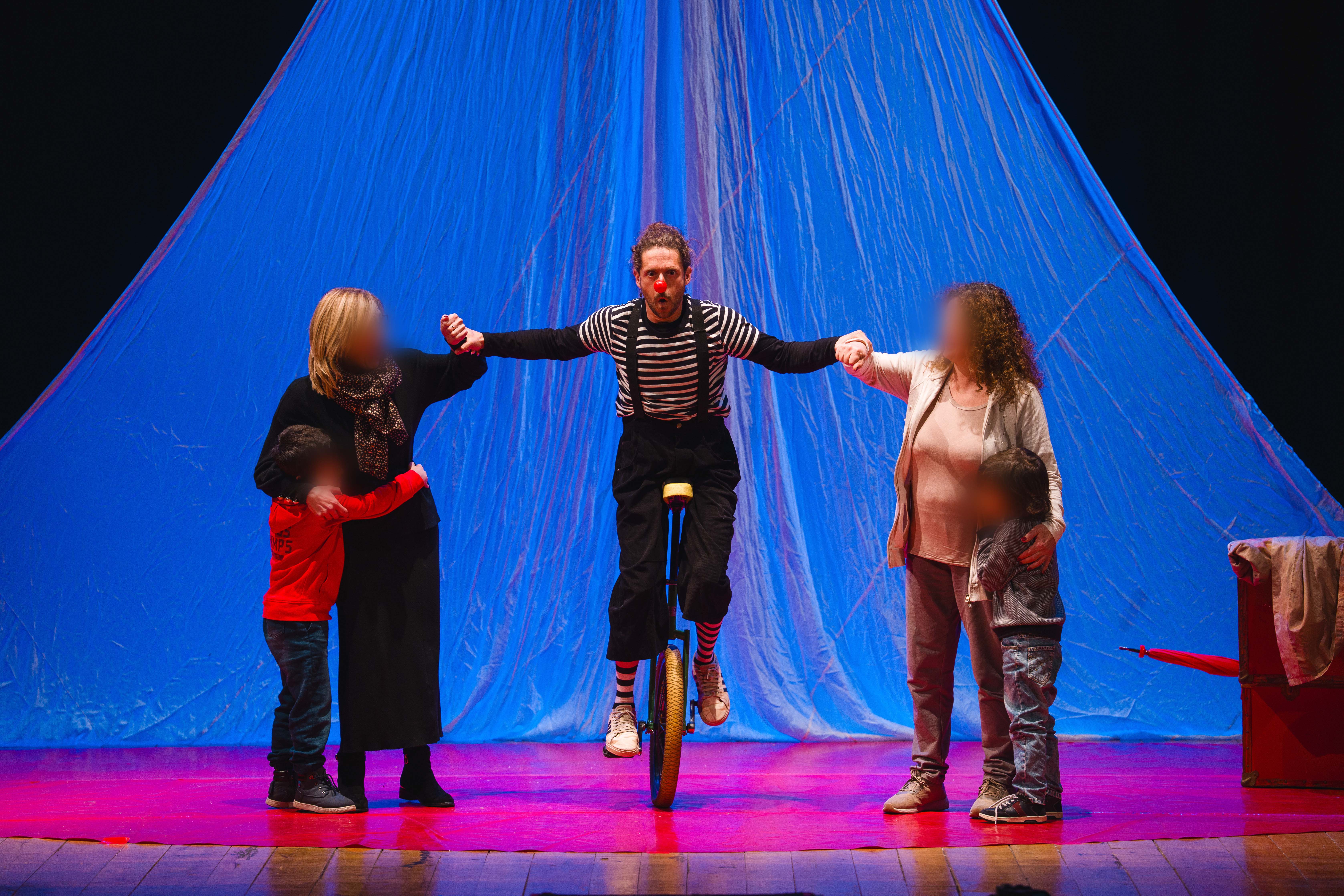 Attraverso il linguaggio del corpo e il gioco clownesco, i bambini e gli adulti sono accompagnati in una riflessione delicata e profonda. Uno spettacolo che diverte, emoziona e lascia nello spettatore un piccolo seme di libertà.