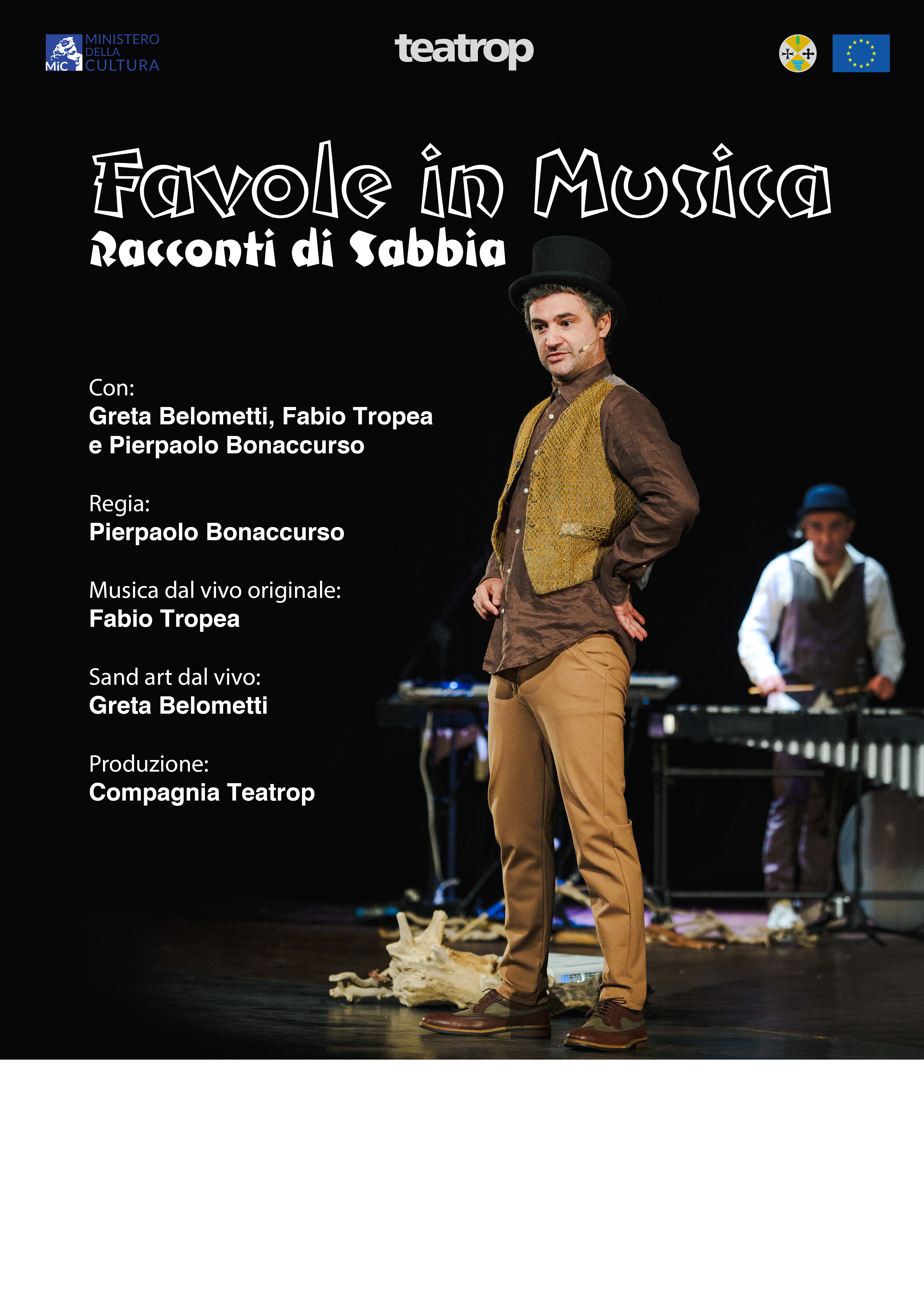 Trama e temi dello spettacolo: Favole in Musica. Racconti di sabbia è uno spettacolo che intreccia parola, musica e immagini effimere per dare vita a un viaggio teatrale ispirato ai grandi racconti della tradizione.
