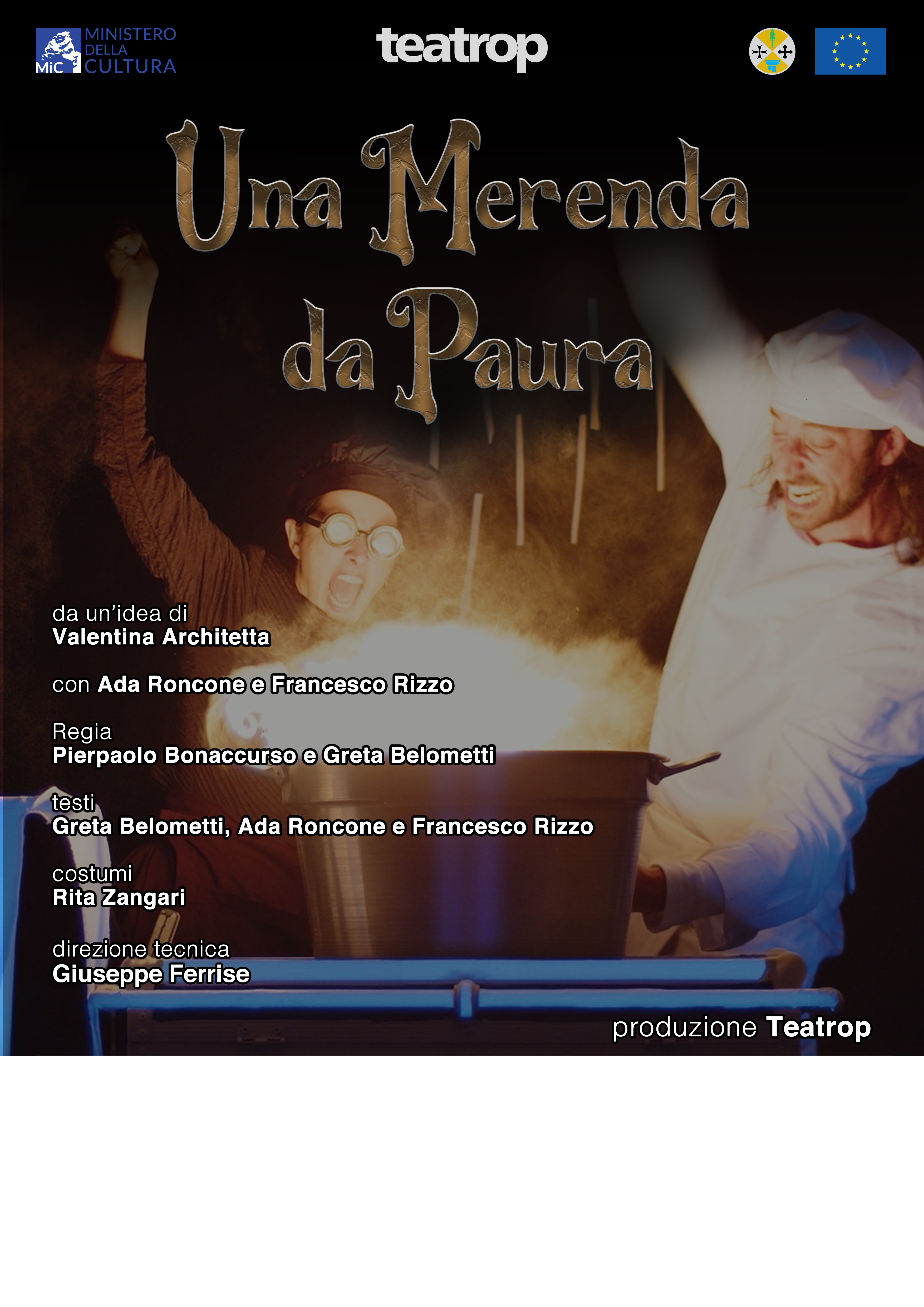 Trama e temi dello spettacolo: Gli abitanti di Puzzo Stregato sono degli amanti di cibi stregoneschi, glassati e ricchi di burro e zucchero. Nella cucina della pasticceria di Strega Lucrezia e Stregone Bartolomeo, suo cugino, ci aspettano tante sorprese. Da un lato Bart, dopo il suo ultimo viaggio, ha scoperto l’importanza di un’alimentazione salutare che vuole far conoscere a tutti gli abitanti di Puzzo Stregato, compresa la terribile e golosissima cugina. Dall’altro Lucrezia, golosissima e molto arrabbiata, ha fretta di completare l’ordine che risolverà tutti i loro problemi economici. Entro la mezzanotte devono infatti consegnare ad un’importante grande azienda un’enorme quantità di dolci zuccherati. Lo scontro tra i due è inevitabile. Chi avrà la meglio? La golosa e poco in salute Strega Lucrezia o il simpatico e ginnico Stregone Bart?